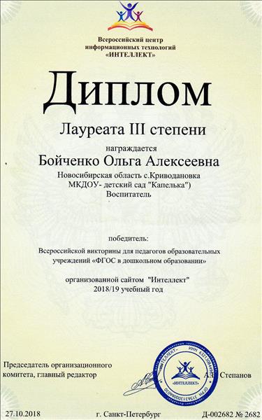 Всероссийская викторина для педагогов образовательных учреждений"ФГОС в дошкольном образовании"
