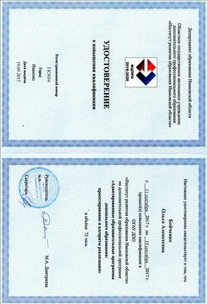 | ОГАУ ДПО "Институт развития образования Ивановской области" | "Адаптированные образовательные программы дошкольного образования: проектирование и алгоритм реализации" | 72 | очная | 11.09.2017 | 19.09.2017 | Файл |