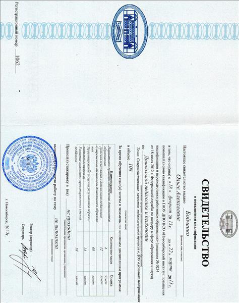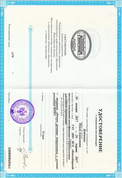 | ГАОУ ДПО НСО "Новосибирский институт повышения квалификации и переподготовки работников образования" | "Речевое разитие дошкольников в условиях реализации ФГОС" | 72 | очная | 30.01.2017 | 24.03.2017 | Файл |